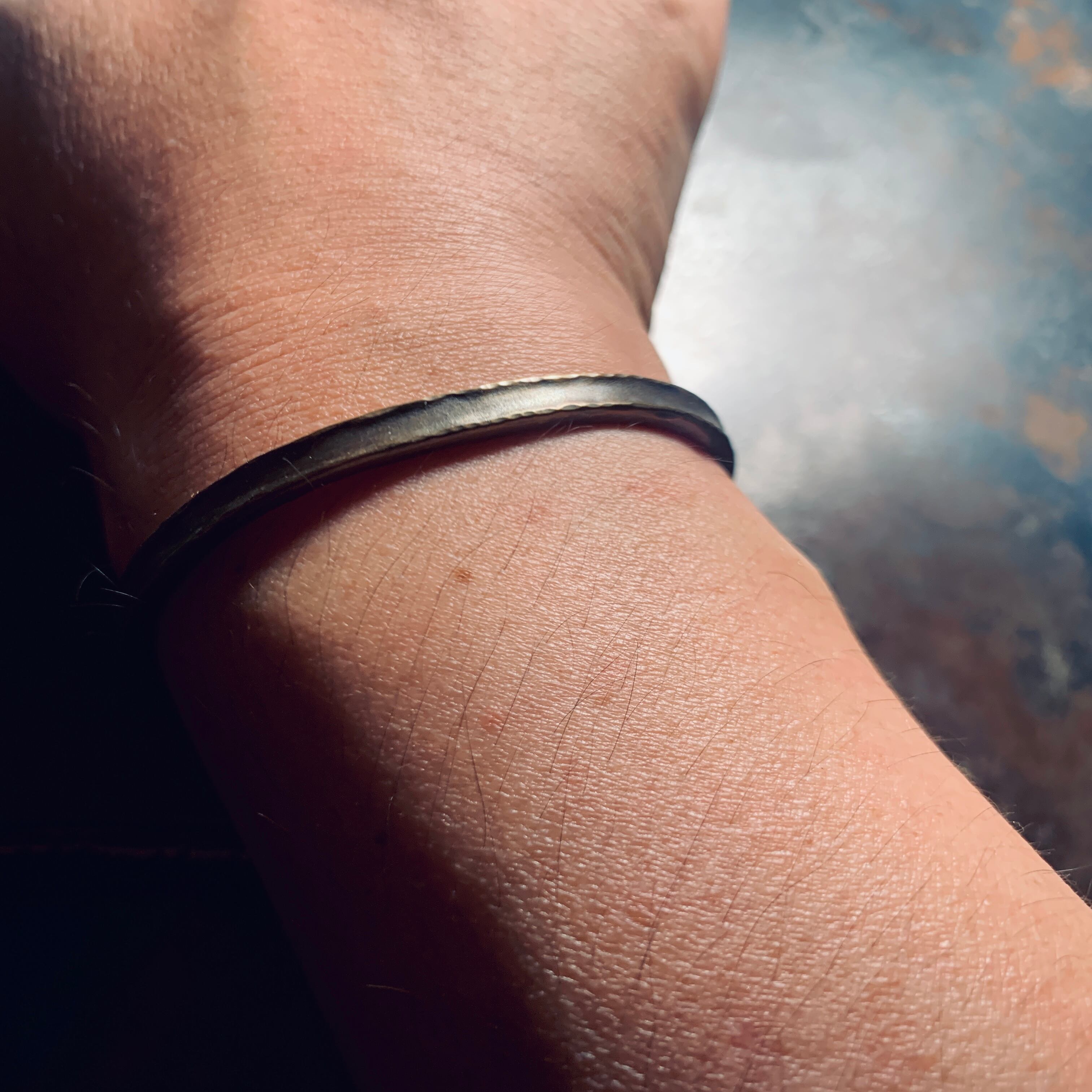 ヴィンテージ感溢れる一点もののアクセサリーです。ハンドメイドで丁寧に作られたこのバングルは、他では見つけられないデザインと質感が魅力。真鍮独特の風合いが、おしゃれな大人の雰囲気を引き立てます。